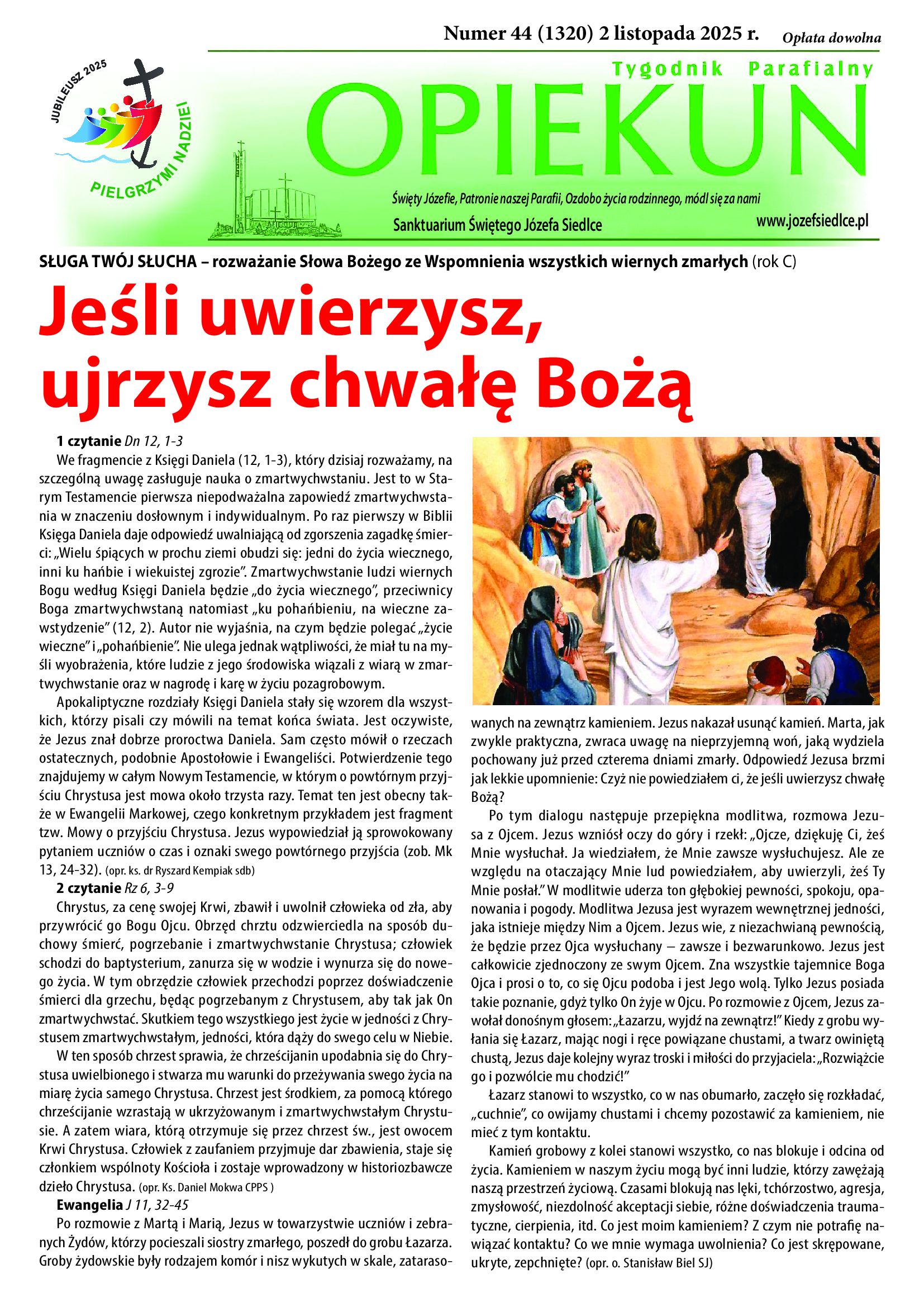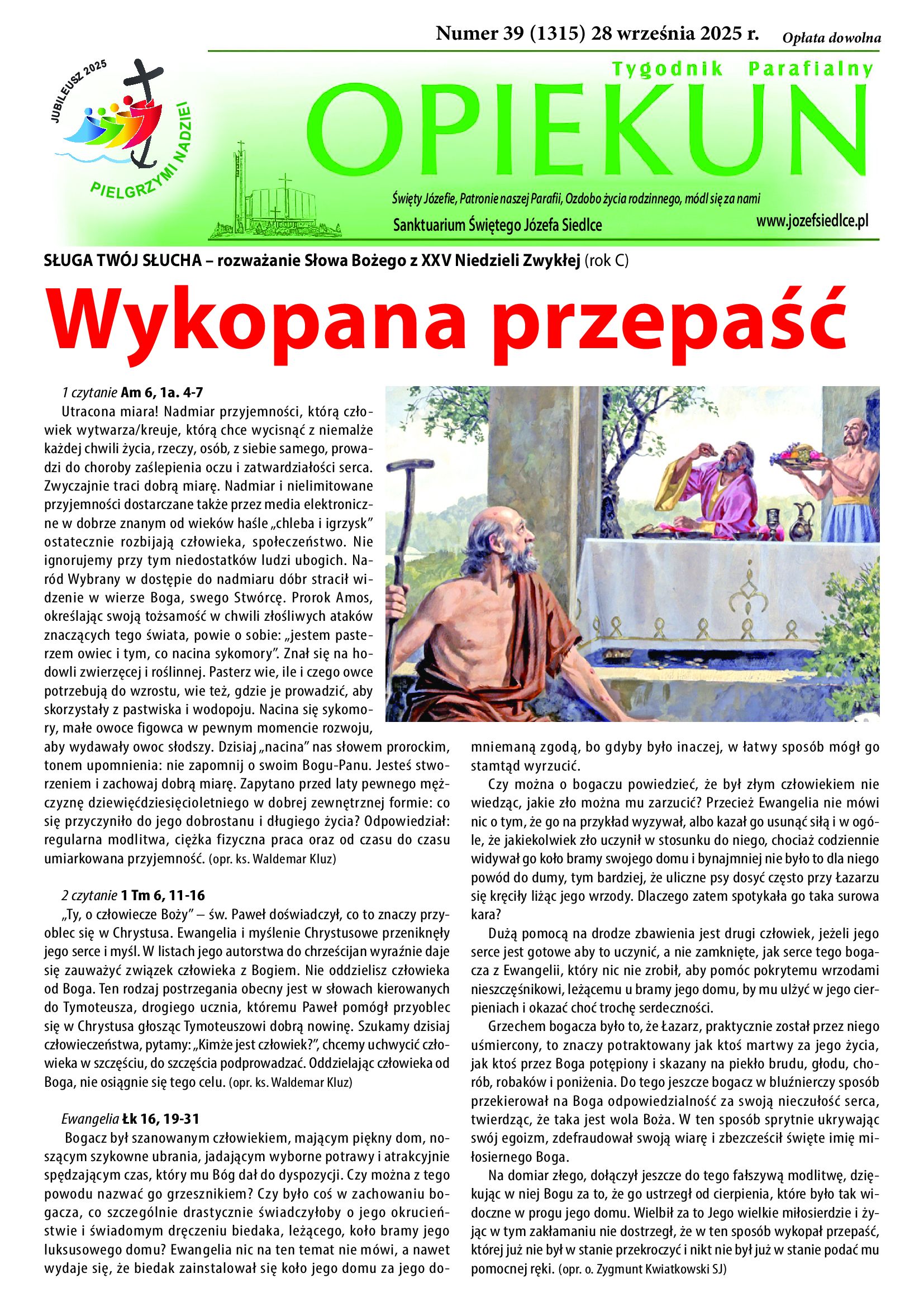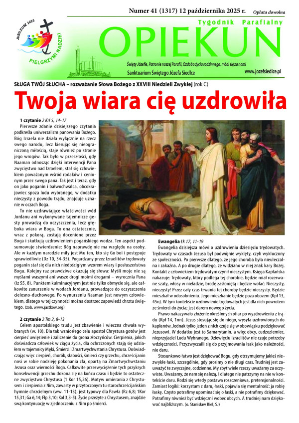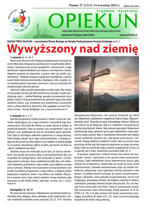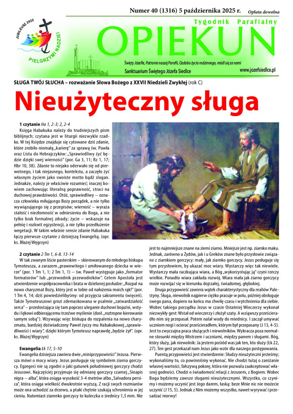 Zachęcamy do lektury nowego numeru naszego tygodnika Opiekuna w którym między innymi o śmierci w Katechizmie Kościoła Katolickiego, pierwszej adhortacji Leona XIV oraz o pielgrzymce Jubileuszowej do Rzymu na którą zaprasza ks. Robert.