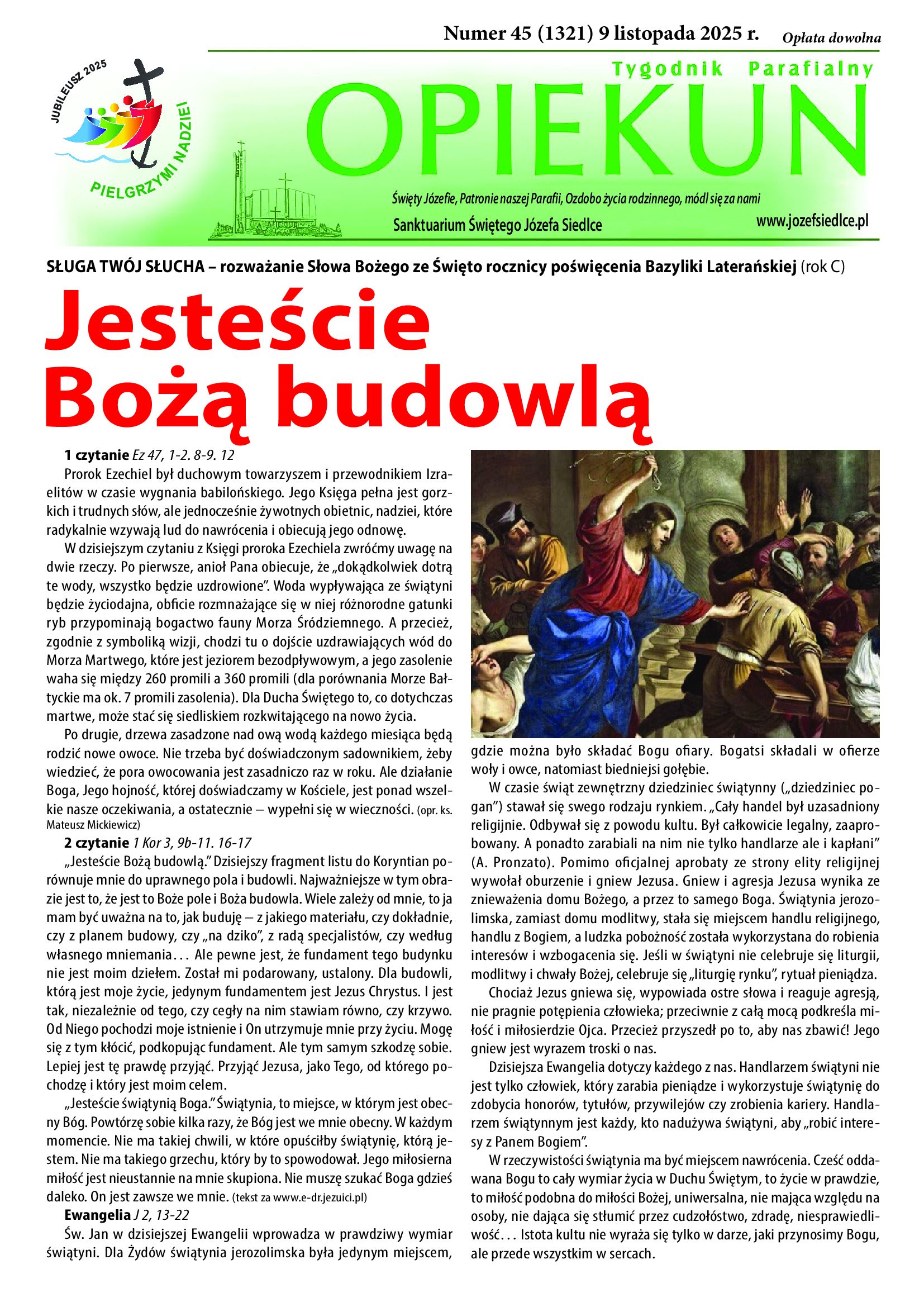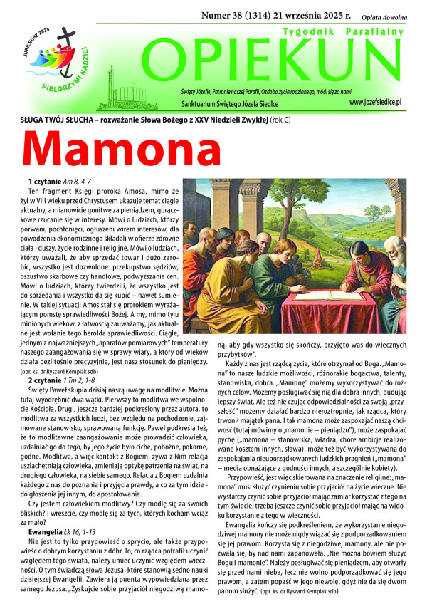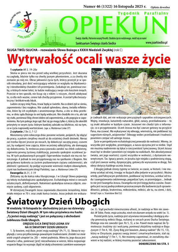 Zachęcamy do lektury nowego numeru naszego tygodnika Opiekuna w którym między innymi Orędzia papieża Leona na Światowy Dzień Ubogich, kolejny artykuł z serii o „Ekonomii w ujęciu biblijnym” oraz relacja z uroczystości Święta Niepodległości.