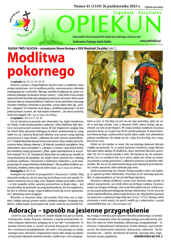Zachęcamy do lektury nowego numeru naszego tygodnika Opiekuna w którym między innymi relacja z dnia skupienia Róż Różańcowych i Kół Żywego Różańca, o rozpoczynającym się Tygodniu Misyjnym, zaproszenie na Siedlecki Marsz Świętych i pielgrzymkę kolejarzy na Jasną Górę.